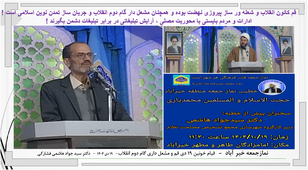 نمازجمعه منطقه خیرآباد – 19 دی 1404 - « قیام خونین 19 دی قم و مشعل داری گام دوم انقلاب » - دکتر سید جواد هاشمی فشارکی