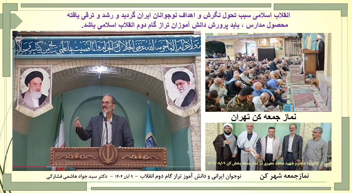 نمازجمعه بخش کن تهران – 9 آبان 1404 - « نوجوان ایرانی و دانش آموز تراز گام دوم انقلاب » - دکتر سید جواد هاشمی فشارکی