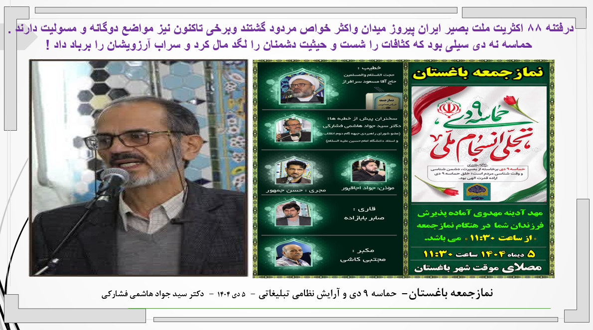 نمازجمعه باغستان ، 5 دی 1404 ، دکتر سیدجوادهاشمی فشارکی