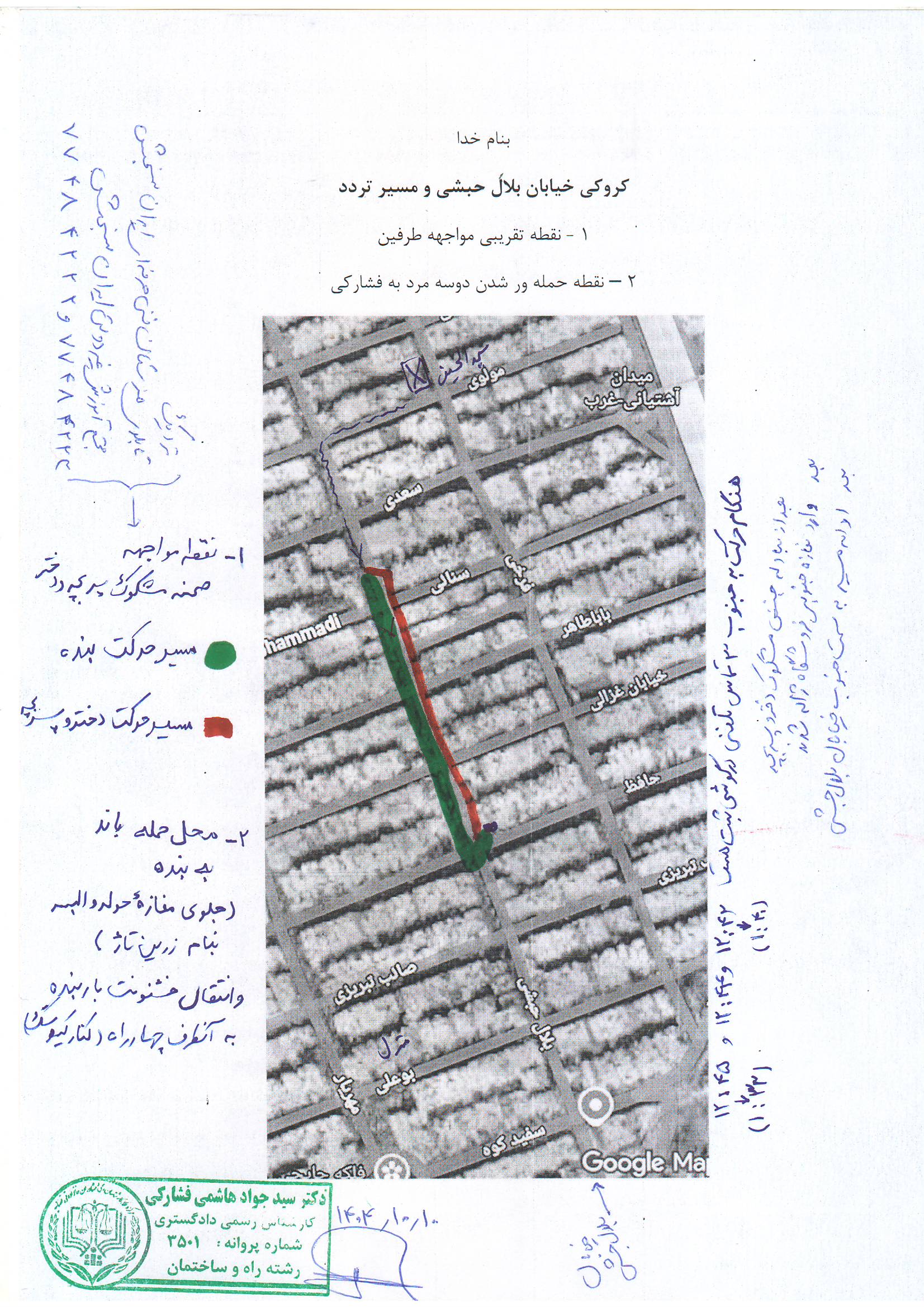 مستند 2 : موقعیت نقطه مواجهه و میسر تردد و محل خشونت : کروکی زیر